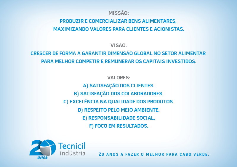 A Tecnicil Indústria é uma sociedade anónima, que produz e distribui bens alimentares: água de mesa, refrigerantes, leite, néctares e sumos de fruta, e iogurte. Iniciou as suas atividades em Dezembro de 1999. A produção e comercialização dos produtos se iniciaram em Junho do ano 2000 em Achada Grande Trás, com a água de mesa.